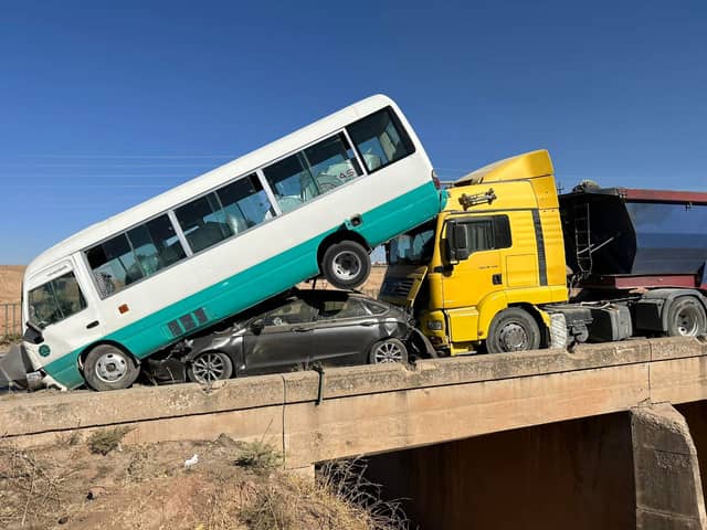 یەکێک لە ئۆتۆمبێلەکان پاسی قوتابیانی زانکۆیە، بەڵام هیچ قوتابییەک بریندار نەبووە....