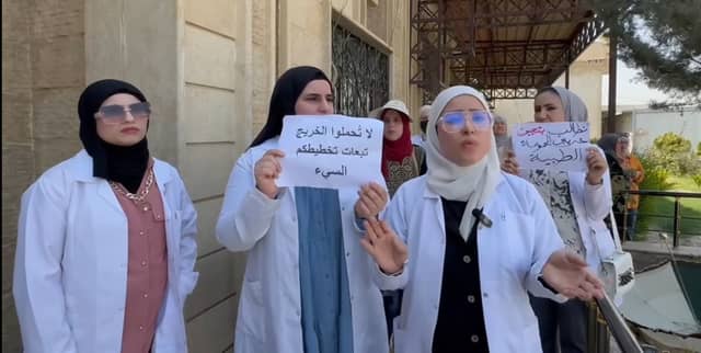 دەرچووانی بەشە پزیشکییەکان لە بەغدا خۆپیشاندان دەکەن