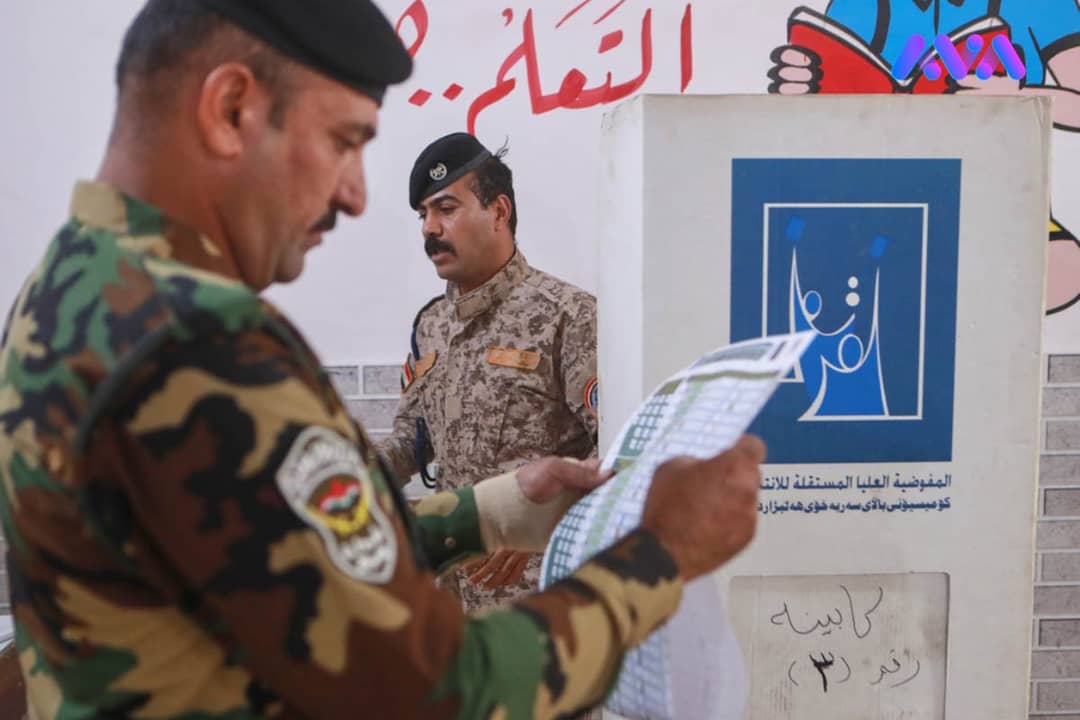بەوێنە؛ بەشداریی هێزە ئەمنییەکانی عێراق لە پڕۆسەی دەنگدانی تایبەت