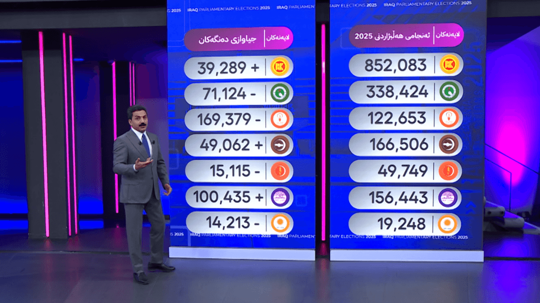 دەنگی حیزبەکان بەراورد بە هەڵبژاردنی ڕابردوو چەند زیاد و کەمی کردووە؟