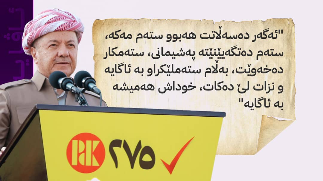 سەرۆک بارزانی لەبارەی ستەم بە وتەیەکی ئیمام عەلی کۆتایی بە وتارەکەی دەهێنێت