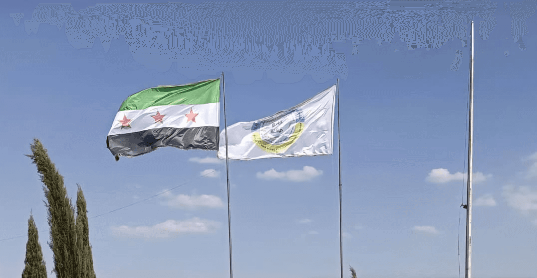 بۆ یەکەمجار بەڕێوەبەرایەتیی خۆسەر ئاڵای سووریا لەپاڵ دروشمەکەی بەرز دەکاتەوە
