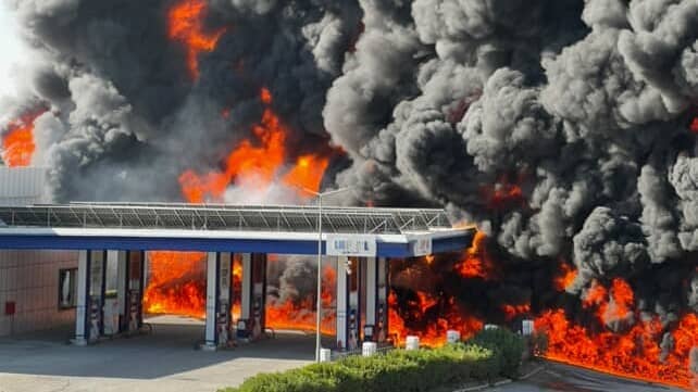 ئاگرێکی گەورە لە بەنزینخانەیەکی هەولێر دەکەوێتەوە